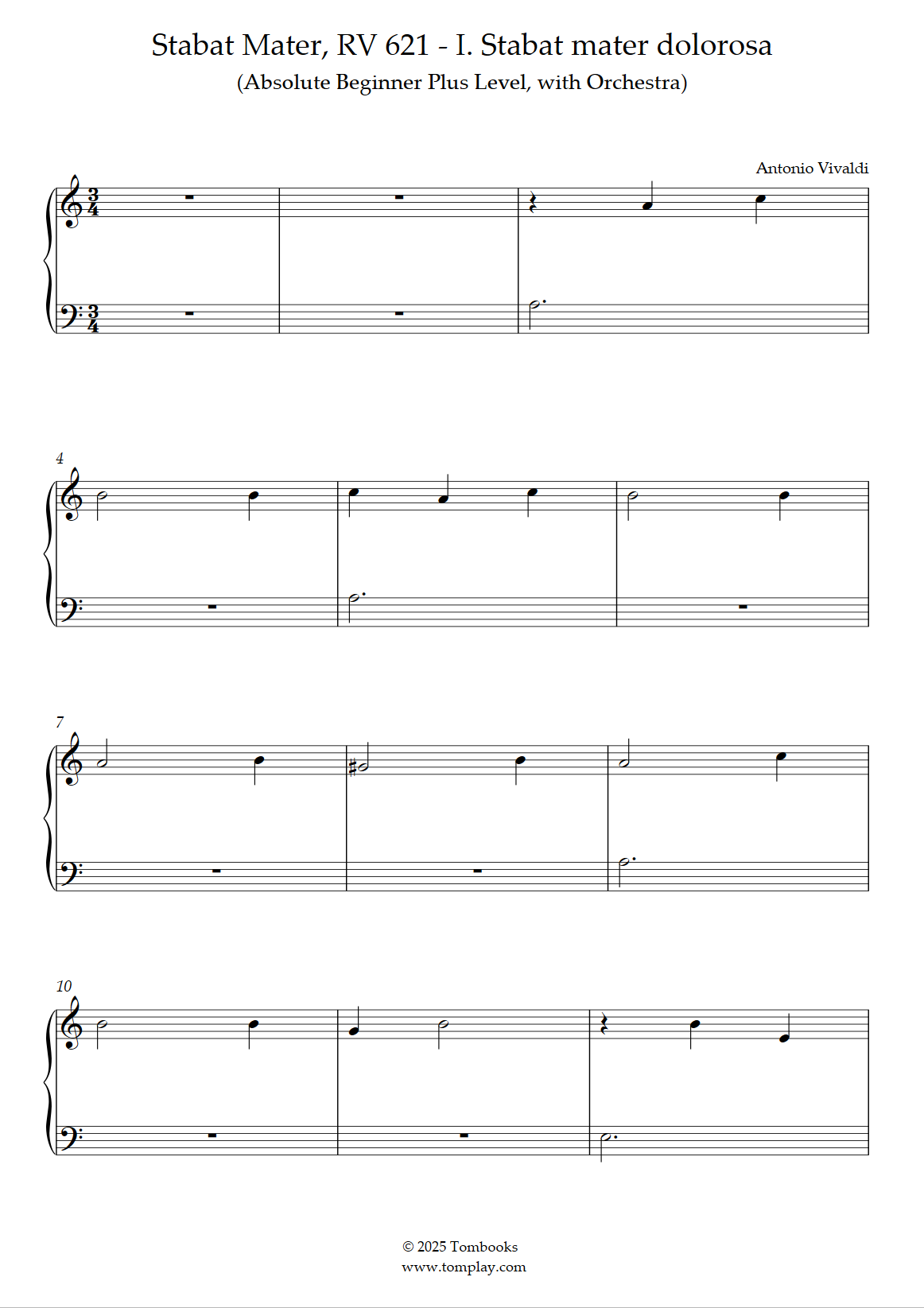 Téléchargez la partition Piano Stabat Mater, RV 621 - I. Stabat mater dolorosa (niveau déb…