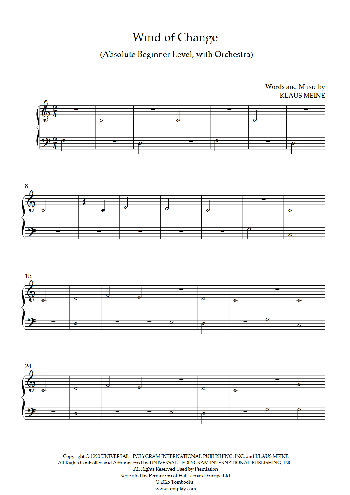 Téléchargez la partition Piano Wind of Change (niveau débutant absolu, avec orchestre) de …