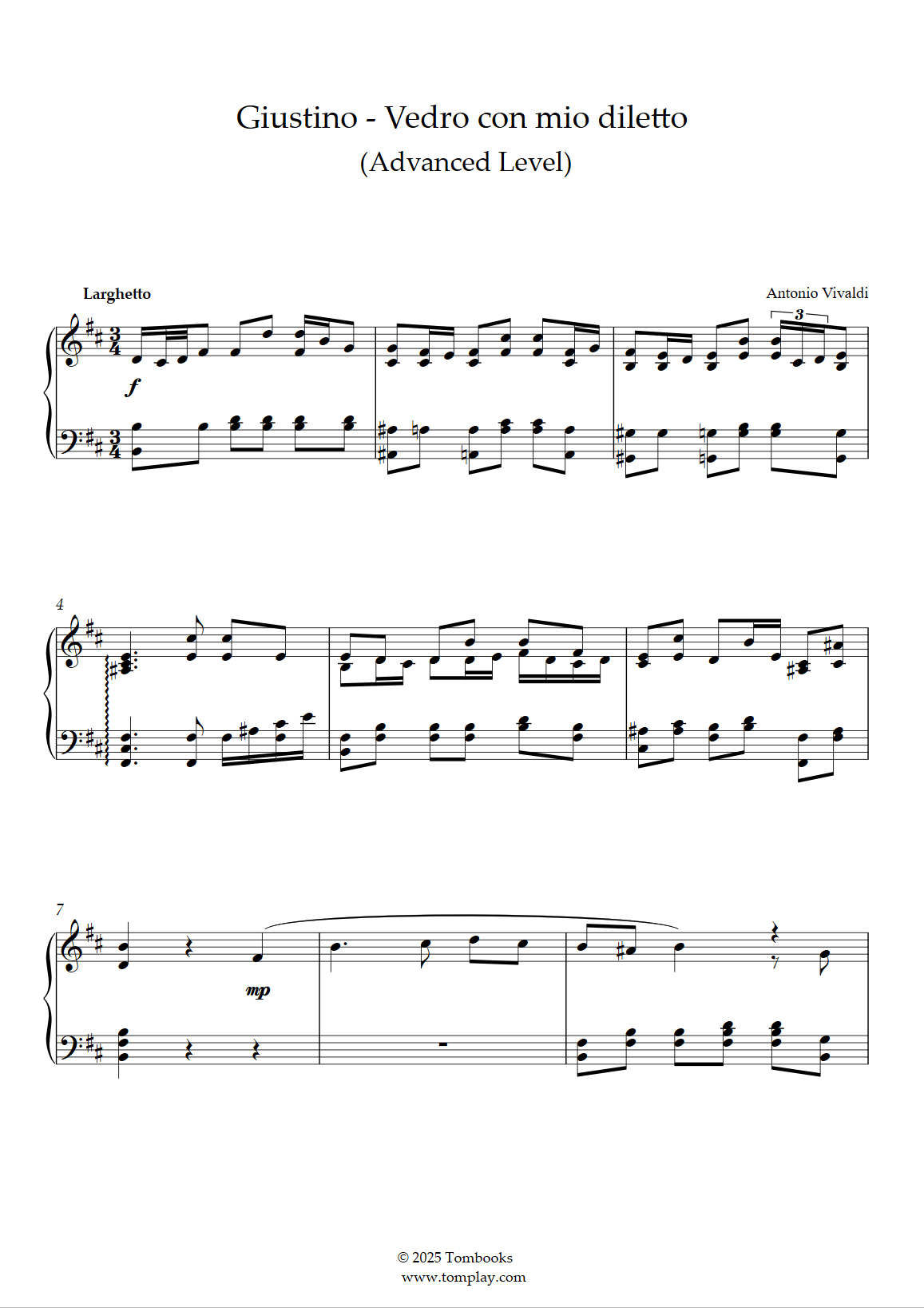 Téléchargez la partition Piano Giustino - Vedro con mio diletto (niveau difficile, avec or…
