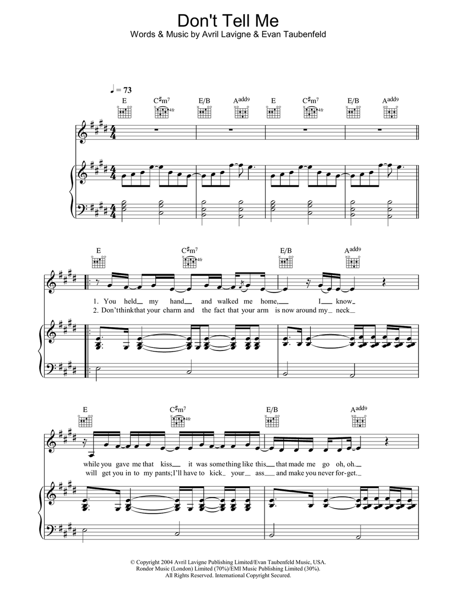By Avril Lavigne. For piano, voice, and guitar (chords only). Pop; Rock. 5 pages. Published by Hal Leonard - Digital Sheet Music