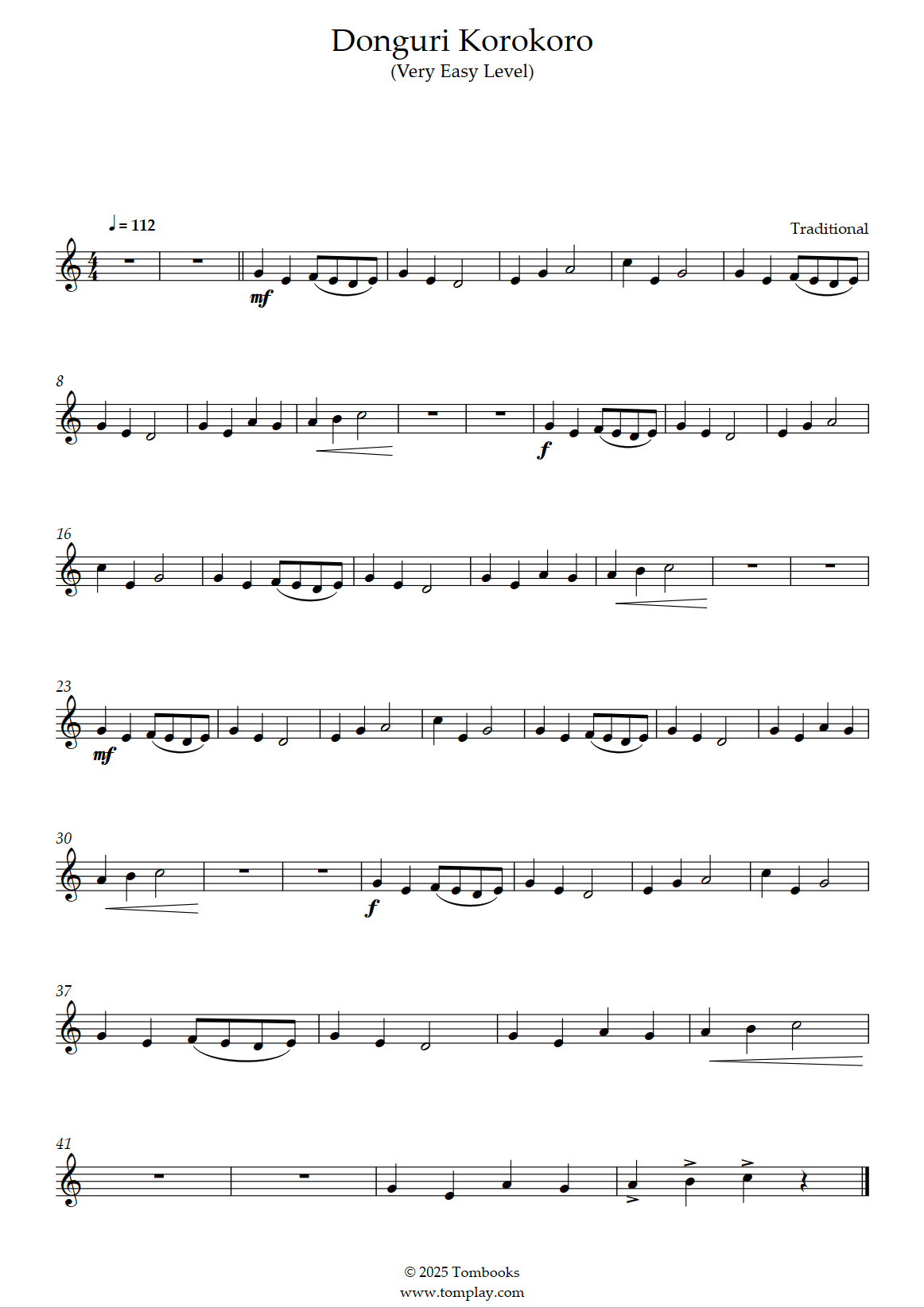 Téléchargez la partition Trompette Donguri Korokoro (niveau très facile) de Traditionnel. …