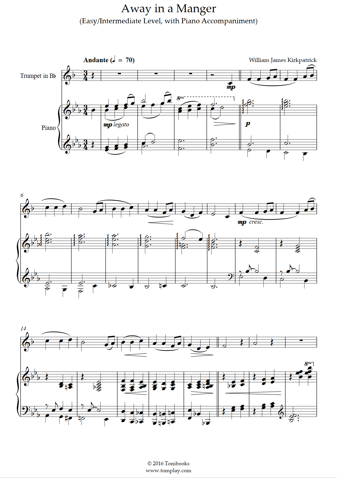 Téléchargez la partition Trompette Away in a Manger (Là-bas dans une …