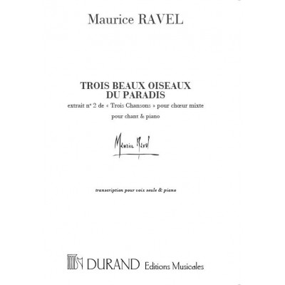 | Ravel M. - Trois Beaux Oiseaux Du Paradis - Chant Et Piano Piano, Voice Durand