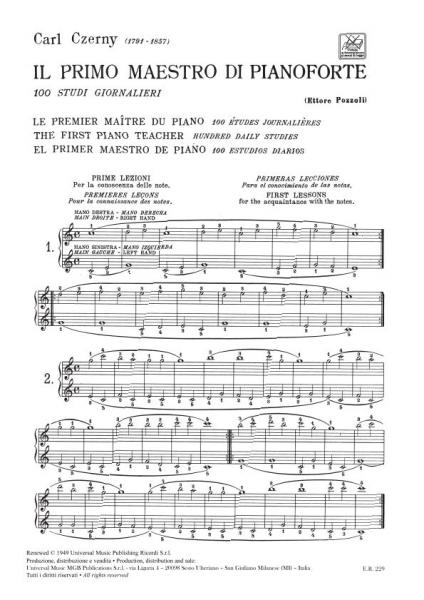 | Czerny C. - Primo Maestro Di Pianoforte - 100 Studi Giornalieri Op 599 - Piano Piano solo Ricordi