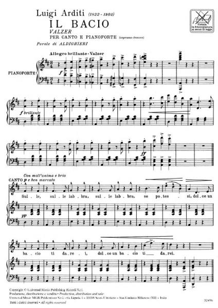 | Arditi L. - Bacio - Chant Et Piano Piano, Voice Ricordi