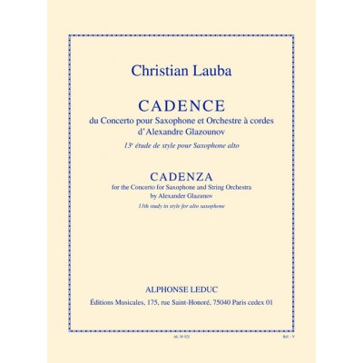 | Cadence du concerto pour sax et orchestre a cordes Alto Saxophone Leduc, Alphonse