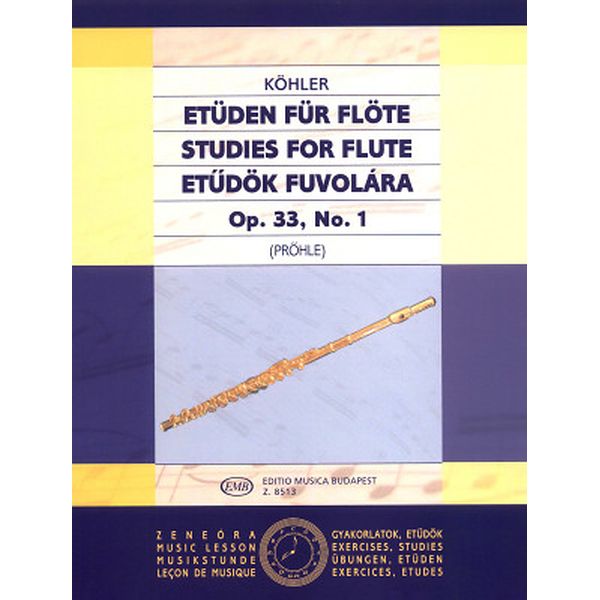 Editio Musica Budapest Ernesto Köhler Studies for Flute op. 33, No.1: 15 studies for flute, edited by Henrik Pröhle, intermediate level of difficulty, ISMN 9790080085134, EMB 8513, 23 x 30.2 cm, 20 pages / Editio Musica Budapest