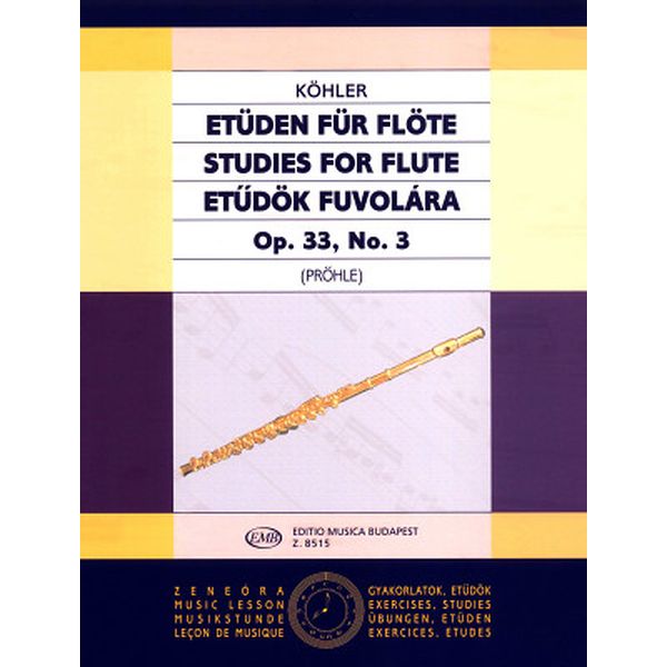 Editio Musica Budapest Ernesto Köhler Studies for Flute op. 33, No.3: 8 studies for flute, edited by Henrik Pröhle, advanced level of difficulty, ISMN 9790080085158, EMB 8515, 23 x 30.2 cm, 20 pages / Editio Musica Budapest