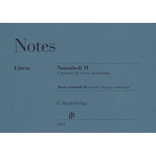 Henle Verlag Music Book M: sheet music book, made from original Henle blue cover and music paper, 32 pages with 6 staves, inside cover printed with overviews of musical basics: intervals, note names, as well as the circle of fifth…