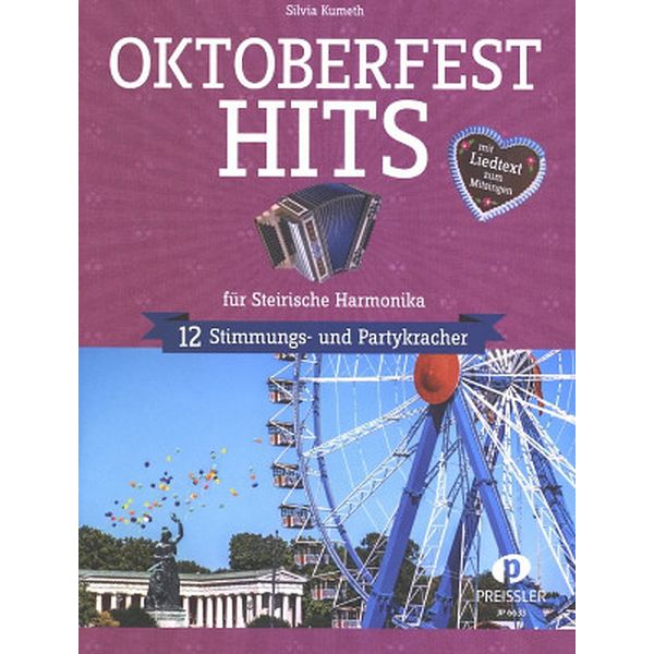 Musikverlag Preissler Oktoberfest Hits: Oktoberfest Hits: 12 party tunes for Styrian harmonica in tablature, edited by Silvia Kumeth, medium level of difficulty, ISBN 9783940013644, ISMN 9790201401232, JP 6633, 23 x 30 cm, 43 page…