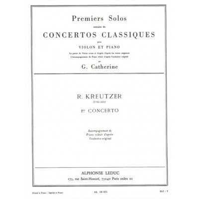 | KREUTZER R. / CATHERINE G. - 1ER SOLO DU CONCERTO N°1 - VIOLON and PIANO Violin and Piano Leduc, Alphonse
