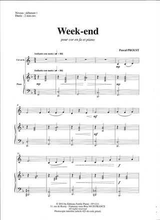 Par FASCE ALBERT. / Niveau : Début 2ème Cycle / classique / Répertoire / Cor et Piano