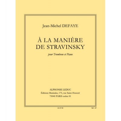 | A La Maniere De Stravinsky Trombone et Piano Leduc, Alphonse
