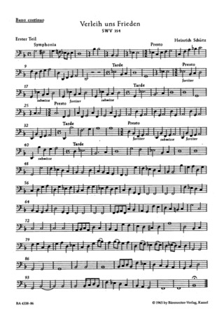| Verleih Uns Frieden Gnädiglich - Gib Unsern Fürsten. Symphoniae Sacraeii/14 Und 15 (SCHUTZ HEINRICH) Soprano ou Ténor, Soprano ou Ténor, 2 Violons et B [Partition] Barenreiter