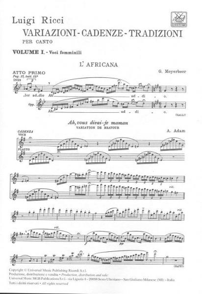 | Ricci L. - Variazioni - Cadenze Tradizioni Per Canto Ricordi