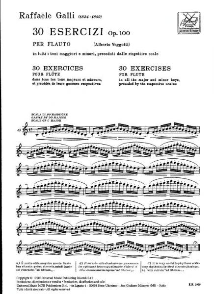 | Galli R. - 30 Esercizi Op. 100 - Flute Flûte traversière Ricordi