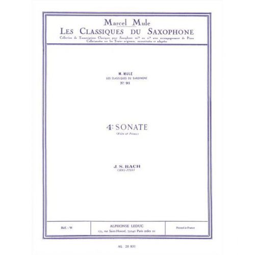 | Bach J.s. - 4e Sonate (flute) - Saxophone & Piano Saxophone [Partition] Leduc, Alphonse