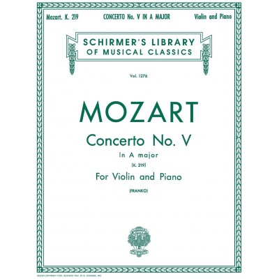 | Violin Concerto No.5 In A Major K.219 Violon et Piano Schirmer