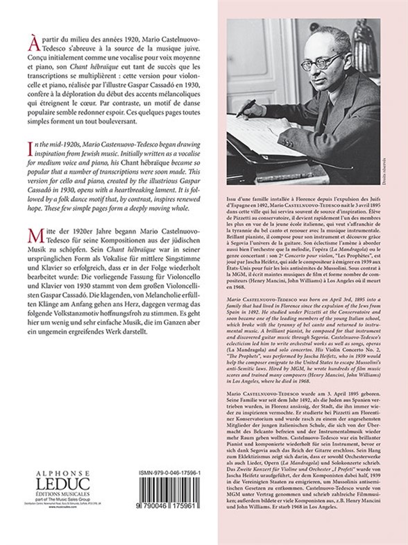 | Castelnuovo-tedesco Mario - Chant Hebraique - Violoncelle and Piano Violoncelle, Piano Leduc, Alphonse