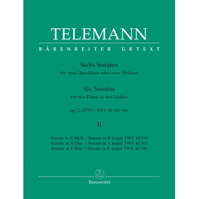Pre-shipment lead time: On orderSechs Sonaten für zwei Querflöten oder zwei Violinen op. 2 TWV 40:103, 105, 106 Editor : Haußwald, Günter