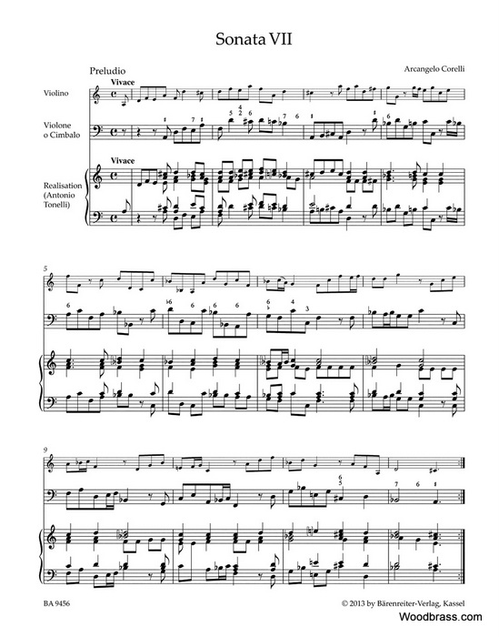 | Corelli A. - Sonatas For Violin And Basso Continuo Op.5, Vii-xii Vol.2Arcangelo Corelli, the violin virtuoso of his time, published his “Sonatas for Violin and Basso continuo opus V” in Rome in 1700. These sonatas are a compendium of violin playing of his time and laid the groundwork for future violin compositions. Over the years the sonatas have been published in nearly 100 editions, all based on Corelli’s first edition which contains only the solo violin line above an unrealized bass line. Today, the sonatas are well known in numerous modern continuo realizations. However a realization from Corelli’s time by Antonio Tonelli also exists and is presented here for the first time in a modern performing edition. This realization is surprising in that it contains full chords, sometimes played by both hands. In addition, Bärenreiter’s new scholarly-critical edition includes many embellishments. For the most part they have been found in handwritten documents by Tartini, Geminiani, McGibbon, Dubourg and Roger (from a re-print of the sonatas from c. 1710). These embellishments are presented in a separate booklet which players can place alongside Corelli’s original on the music stand. Complementing this Urtext edition are a historical introduction, a critical commentary and an appendix containing preludes to the sonatas for keyboard by Tonelli as well as a selection of embellished keyboard movements by Corelli’s contemporaries. - Score with realization of the basso continuo by Tonelli as well as Corelli’s unrealized figured bass line - With a separate Urtext violin part - With a separate unrealized figured continuo part - Includes a separate booklet with embellishments - Appendix with source descriptions, critical commentary (Eng) and preludes for keyboard instrument by Tonelli Edition no.: BA 9456 ISMN: 9790006535125 Editor: Hogwood, Christopher / Mark, Ryan Language(s) of text: English, German Product format: Performance score(s), Set of parts, Anthology, Urtext edition Includes the following individual parts: Violin, Basso continuo Binding: Paperback Pages / Format: XXVI, 67/19/34/43 S. - 31,0 x 24,3 cm Instrumentation : Publisher : |
