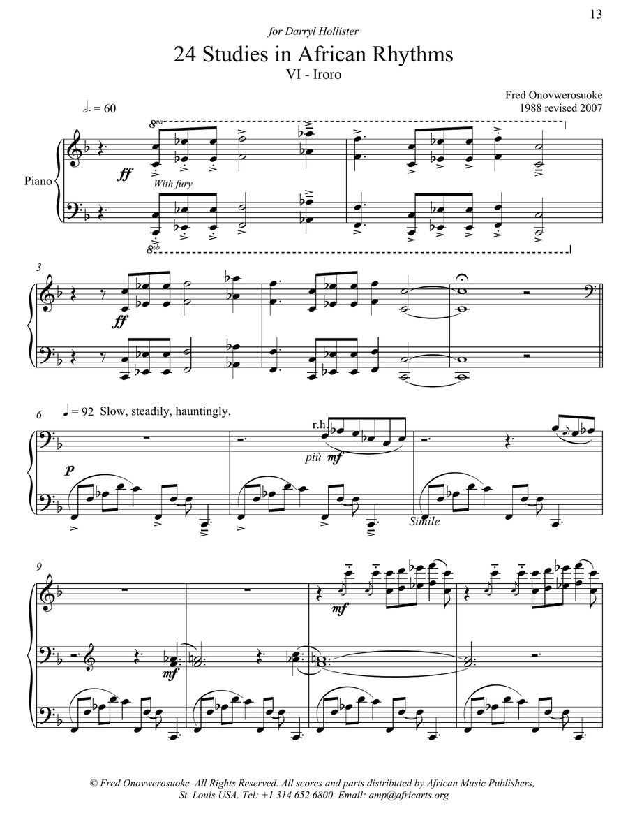 Composed by Fred Onovwerosuoke. Contemporary Classical, Etudes and Exercises, Classroom, Technique Training, African. Score. 2 pages. African Music Publishers #AMP122506. Published by African Music Publishers (S0.24491). - Score - Contemporary Classical,Etudes and Exercises,Classroom,Technique Training,African - African Music Publishers