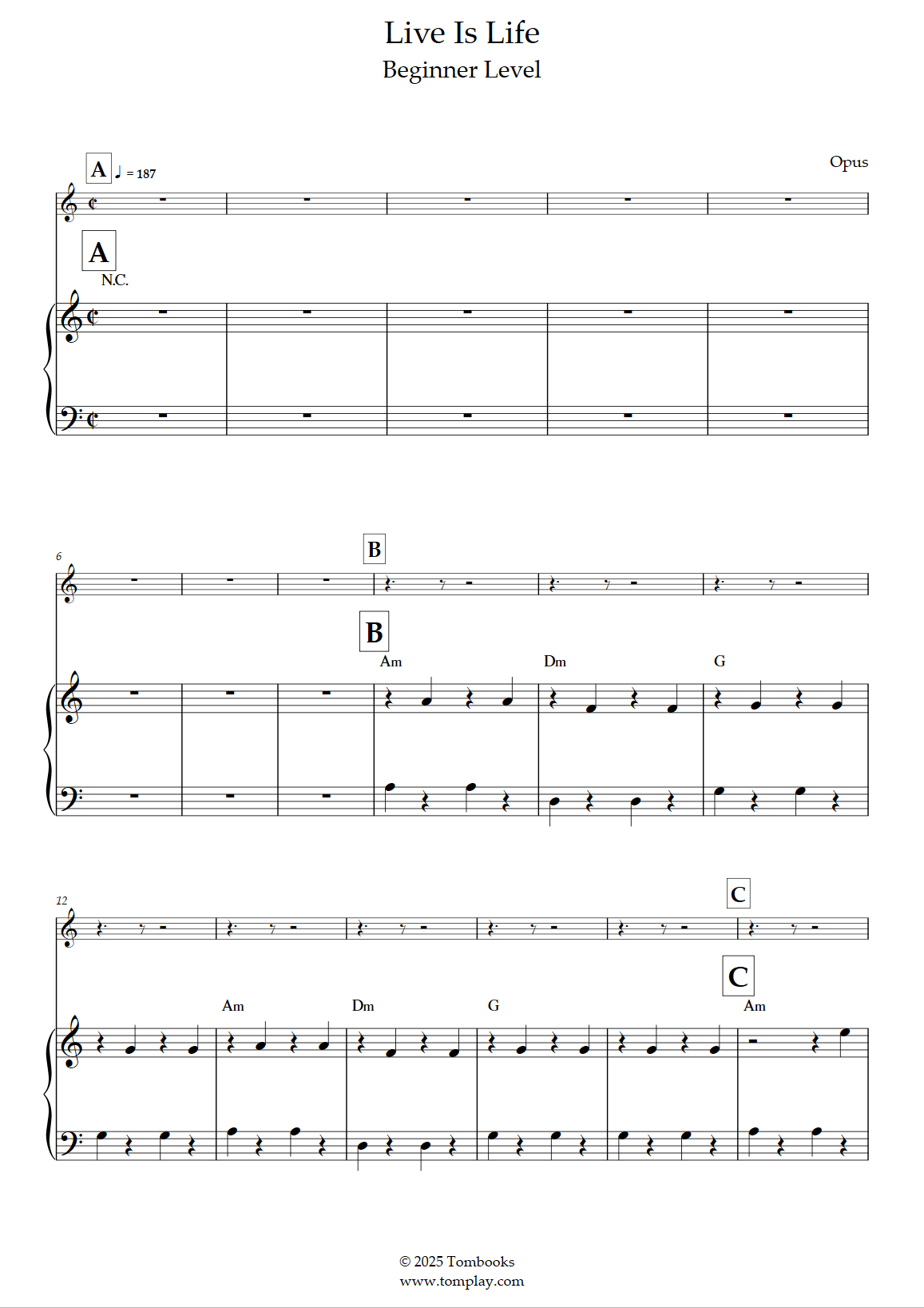 Opus : Live Is Life (niveau débutant, avec orchestre)